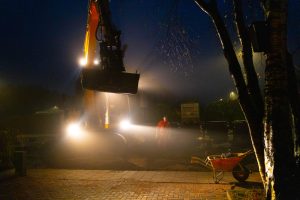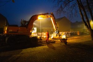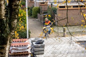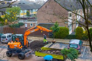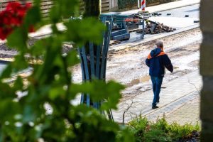 Wonen en werken we het ene moment in de ‘duinen’, wonen we de andere dag weer aan een ‘gracht’, is het lopen naar de supermarkt elke keer een onverwacht avontuur. Elke dag ander uitzicht. Wat een klus is dit. Naast dat de riolering wordt vervangen, worden de wegen opnieuw ingericht en nieuwe bomen aangeplant. Wat komt er veel bij kijken.